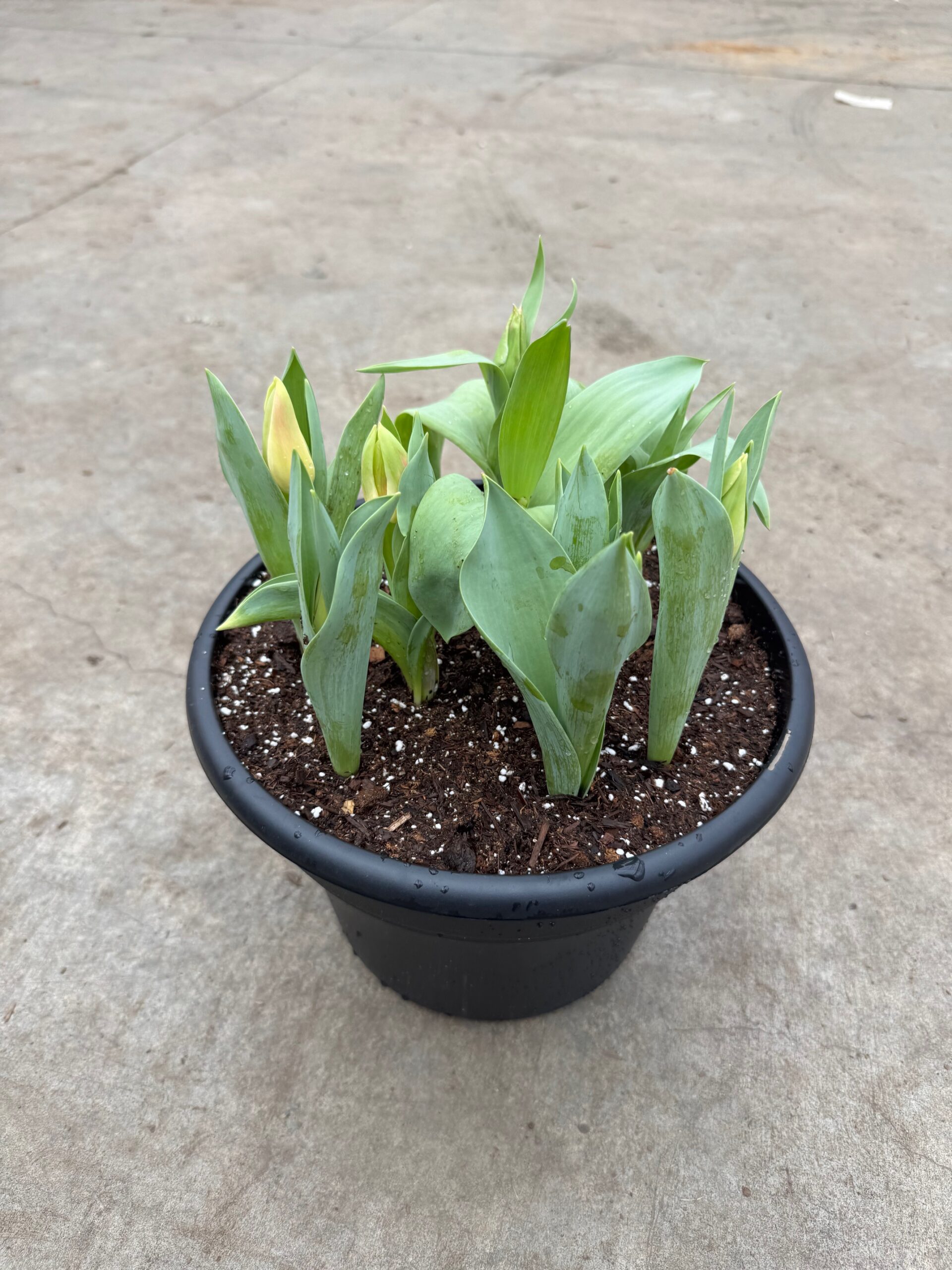 Tulips are here and blooming! An assorted flat may include yellow, white, pink, or red tulips. Great cold-weather color.