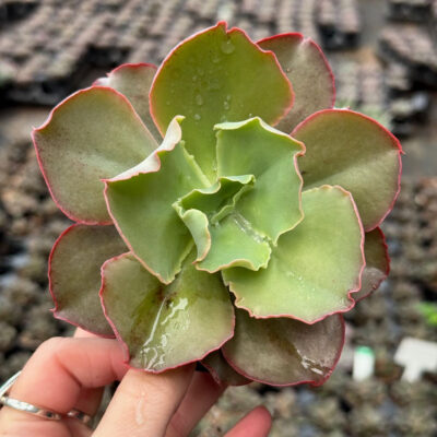 Echeveria Giant Blue is low-maintenance succulent featuring wavy-edged blue-green leaves with pink margins. Can grow up to 10–12+ inches in diameter!