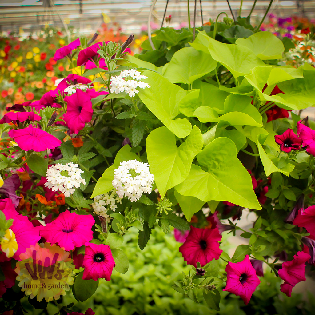 Van Wingerden Greenhouses is excited to offer high-quality premium hanging baskets for organizations across the PNW, including clubs, churches, sports teams, and non-profits. These popular baskets come in a beautiful line of various colors, textures and styles.