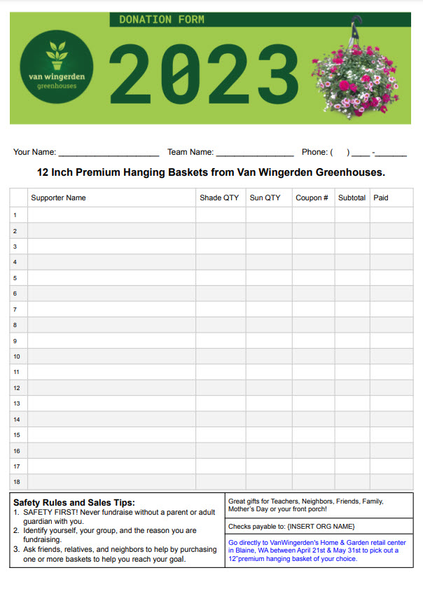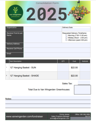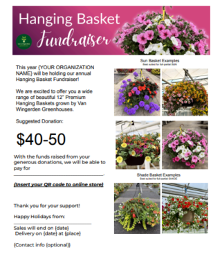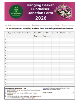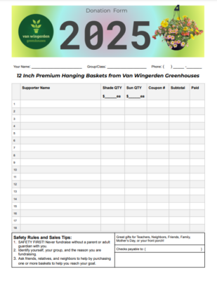 Your group pre-sells the hanging baskets using the Donation Forms (see below) OR our online fundraising platform.