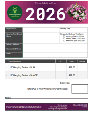 “We had a great experience with the hanging basket fundraiser! From start to finish, everything went smoothly and the communication with VW was always so helpful and timely! Very much appreciated and highly recommend!!”